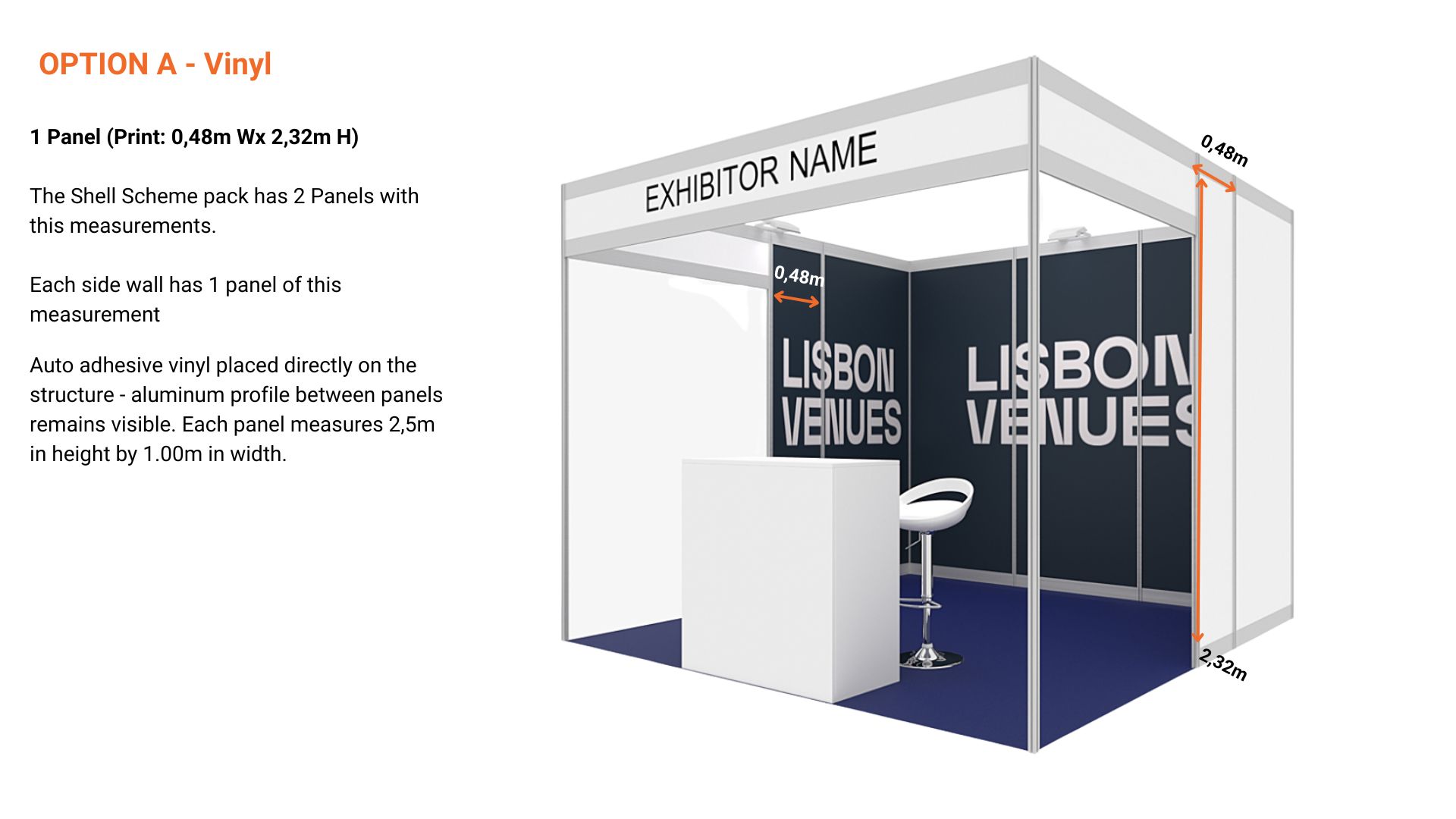 OPTION A - Vinyl - 1 Panel - (Print: 0,48m Wx 2,32m H) ( For full branding you need to select 2 units of this option and 5 units of the option above 0,98m W) (Picture here)