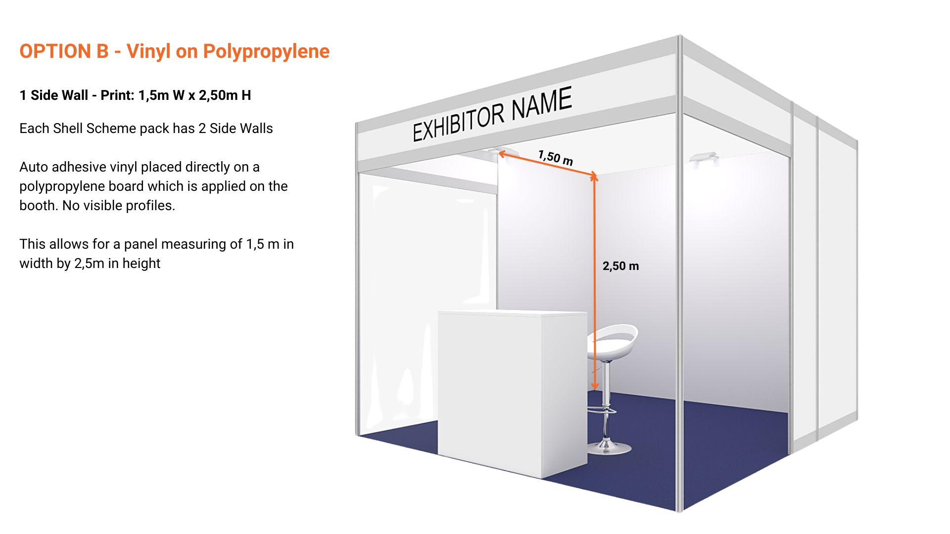 OPTION B - Vinyl on Polypropylene - 1 Side Wall (Print: 1,5m Wx2,5m H) (each 9sqm stand has 2 side walls) (Picture here)