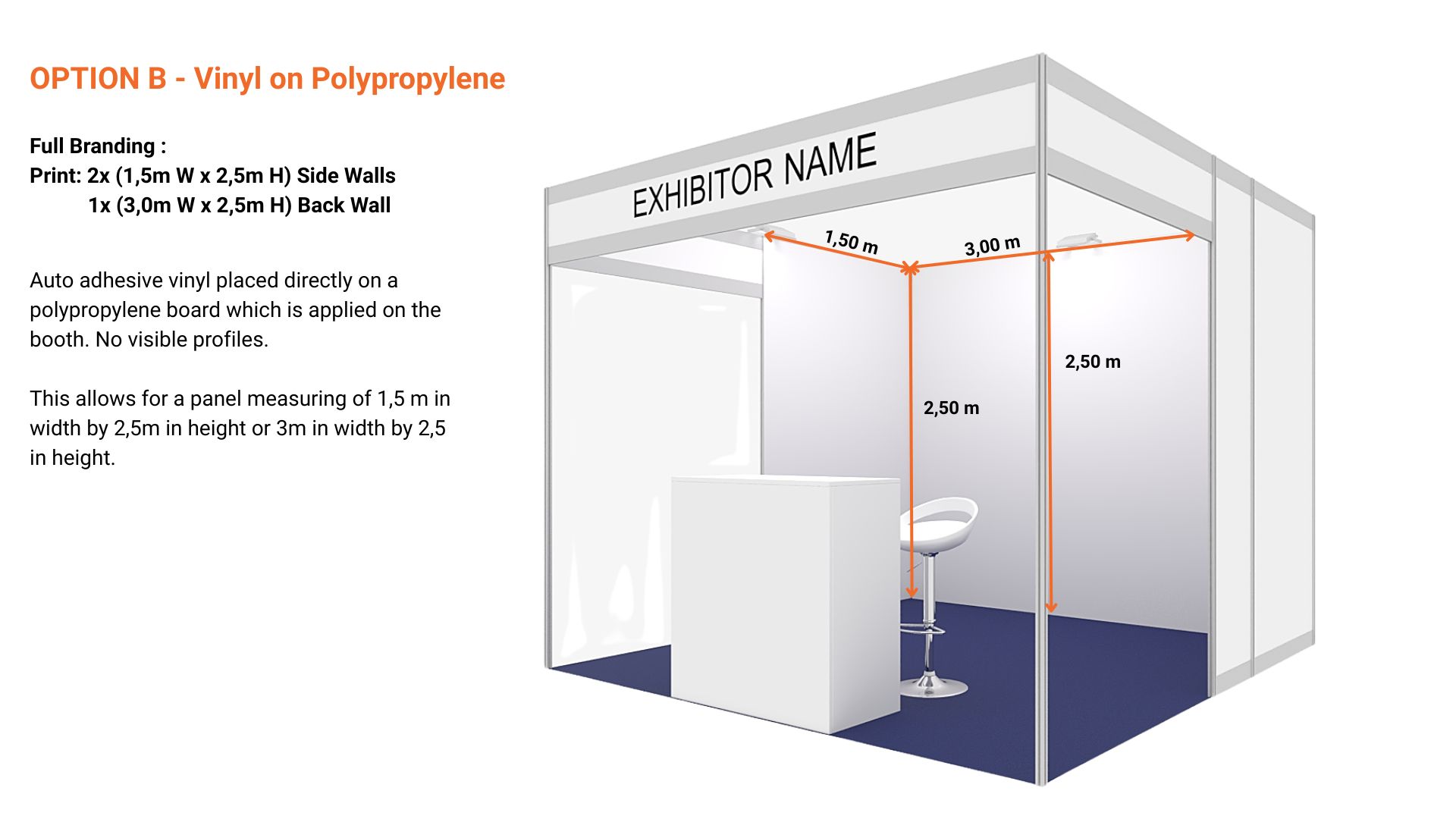OPTION B - Vinyl on Polypropylene - Full Walls Branded (Print: 2x (1,5m W x 2,5m H) + 1x (3m Wx 2,5m H) (Picture here)
